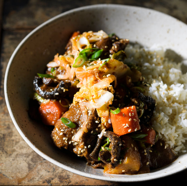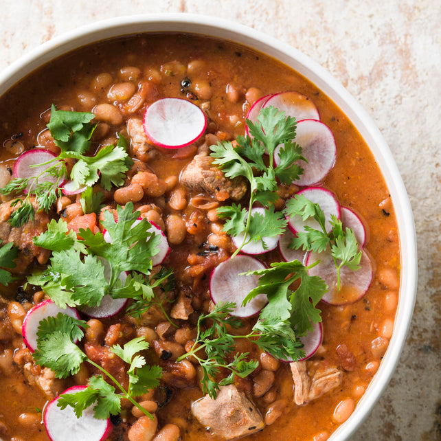 Pressure cooking puts the stew on the table in minutes; crisp radishes, habanero heat and lime brighten the meal.