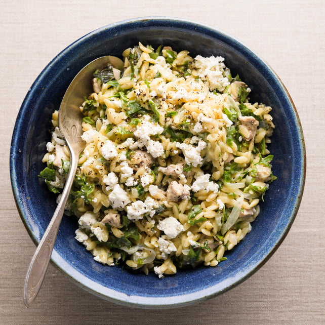 A Greek spin on risotto packs a punch thanks to mint, arugula and pungent feta.