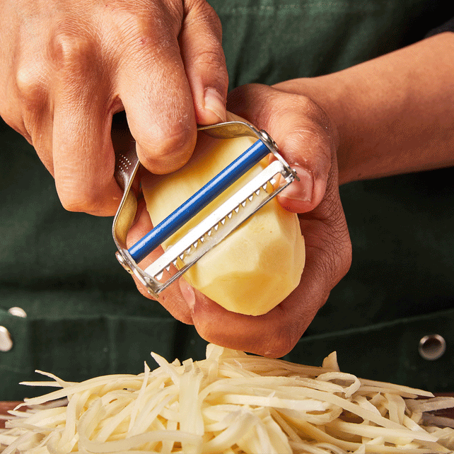 The Milk Street Julienne Peeler makes shredding vegetables easy, safe and effective. We married our confidence-inspiring, ergonomic 304 stainless steel handle to a razor-sharp, 16-tooth julienne blade for a lifetime tool. Shred your way through soft and hard vegetables alike for salads, slaws, hash browns and more. And when the blade eventually wears out, its easily replaceable with the turn of the screw.