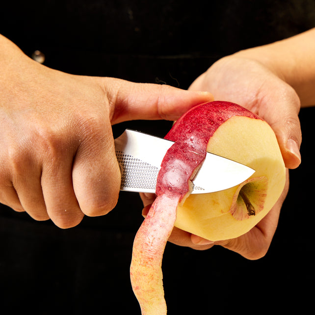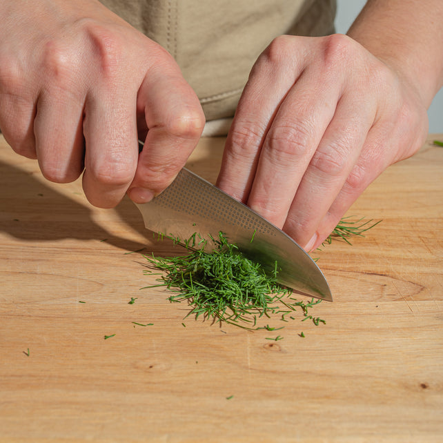 The one kind of knife missing from most Western kitchens is one of the most used in Japan—a midsized, multipurpose utility knife bigger and stronger than a paring knife but smaller and more manageable than a chef’s knife. Why Western cooks typically don’t have such a knife is beyond us, so we took months to design our own. The result is the Kitchin-kiji—the ultimate all-purpose utility knife that will speed up your prep. It’s perfect for all the “in-between” jobs, small enough for detailed handwork like slicing garlic and shallots, trimming mushrooms or cutting fruit. Plus, we designed it with a broad blade to be large enough that it won’t twist, and the larger handle fills the hand for a confident grip.