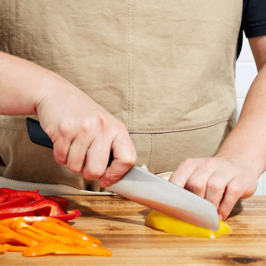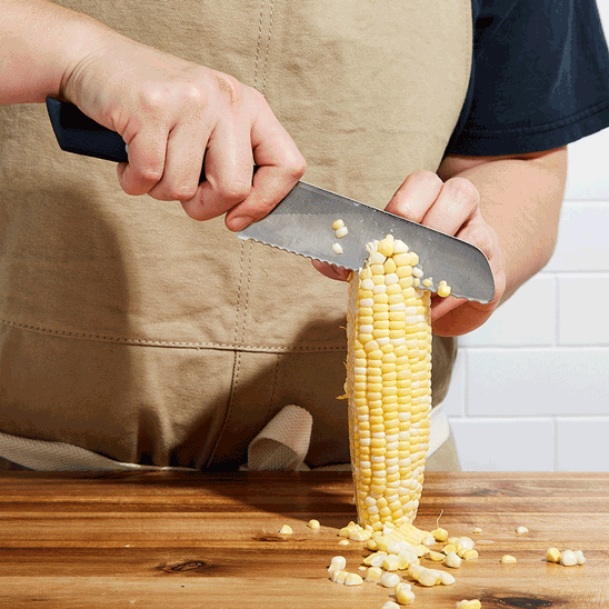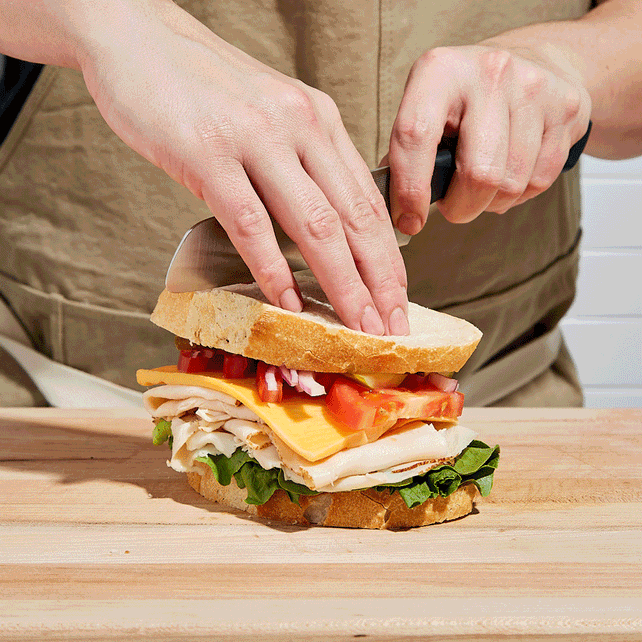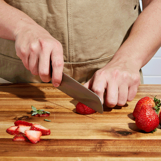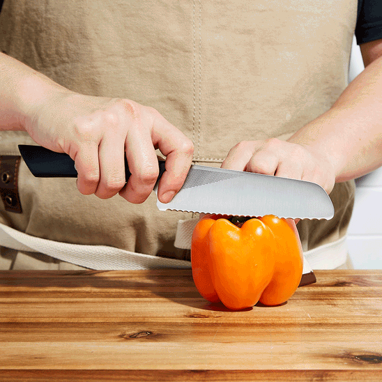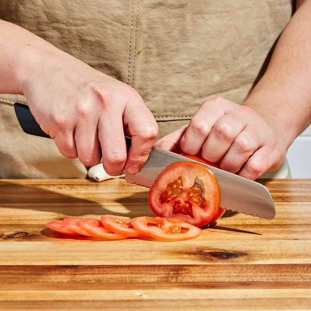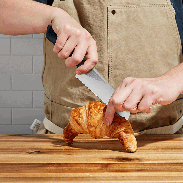 Take the Serrated Kitchin-tan on the go: It’s the perfect picnic and travel knife. Try it on tomatoes, citrus or eggplant—anything with a tough skin that’s tricky to pierce—hard and soft cheeses, fruit, bread, meat and more.