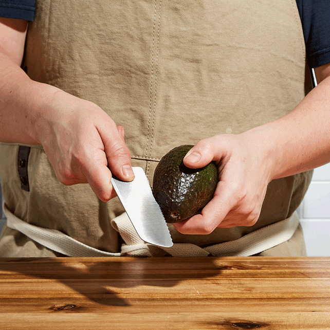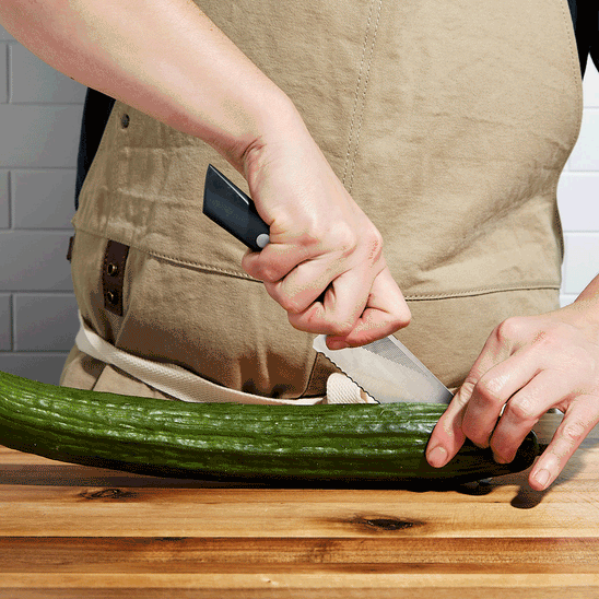The serrated Milk Street Kitchin-tan utility knife will be the most useful knife in your kitchen. It’s a pinch-hitting wonder that spans the gap between a chef’s knife and paring knife. It’s long enough for many big tasks, but small enough for detail work. We’ve taken the proven shape and functionality of the Kitchin-tan and added a maintenance-free serrated edge. The grippy razor teeth effortlessly slice though anything and everything: thick-skinned tomatoes and peppers, fibrous broccoli stems and asparagus stalks, rubbery citrus peels. You’ll be amazed at how often you use this knife.