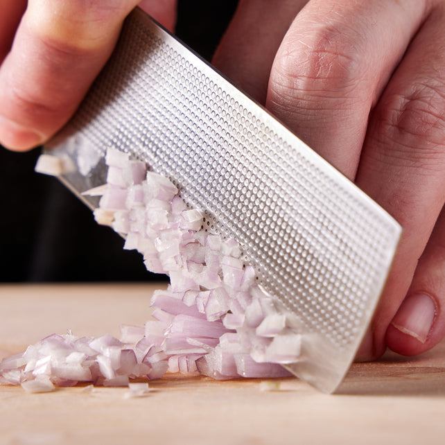 The length and height of the blade make it ideal for precisely mincing shallots, garlic or onions.