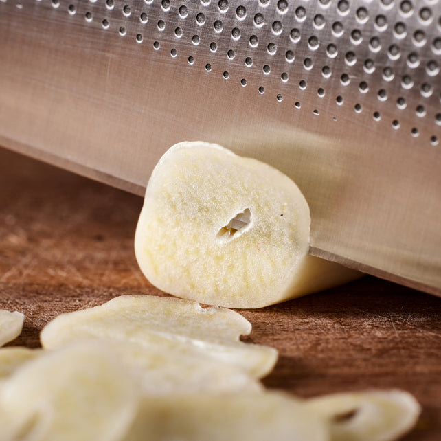 Thanks to the short length and blade height, there’s no better knife for slicing garlic cloves.